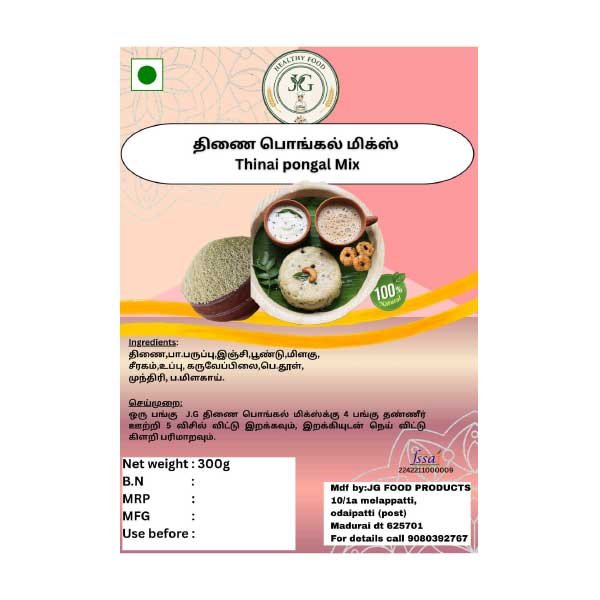 Enjoy a delicious and healthy start to your day with JG Thinai Pongal Mix, made using Thinai (Foxtail Millet) – one of the oldest and most nutritious millets used in Tamil traditional cooking. This ready-to-cook mix is rich in fiber, protein and essential nutrients, making it a perfect alternative to regular rice pongal. Ideal for kids, adults, elders, and fitness lovers.